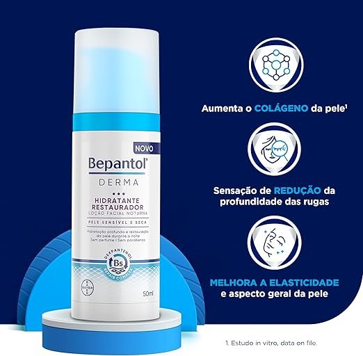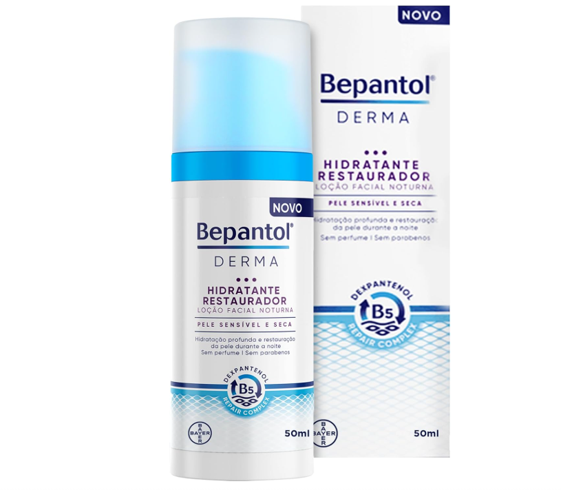 O Bepantol Derma Hidratante Facial Noturno é um produto de cuidado facial noturno que ajuda a hidratar, suavizar e melhorar a aparência da pele. O Creme Facial noturno foi desenvolvido com uma fórmula suave e eficaz que é perfeita para a pele sensível e seca. O creme de rosto Noturno contém o Dexpantenol Repair Complex, uma combinação de ingredientes ativos que atuam em sinergia para hidratar profundamente a pele e reparar sua barreira de proteção natural. A fórmula deste creme hidratante contém ingredientes suaves e não comedogênicos que ajudam a prevenir a obstrução dos poros. Este creme hidratante facial ajuda a manter a hidratação da pele durante a noite, quando o processo de regeneração natural da pele está em seu auge. Ele ajuda a reduzir a aparência de linhas finas, rugas e manchas escuras, deixando a pele com uma aparência mais jovem e revitalizada. Além disso, sua textura leve e não oleosa é rapidamente absorvida pela pele, deixando-a suave e macia ao toque. O creme noturno facial é um produto livre de corantes, fragrâncias e conservantes que podem irritar a pele. Combine com um hidratante labial para uma rotina de skincare completa.